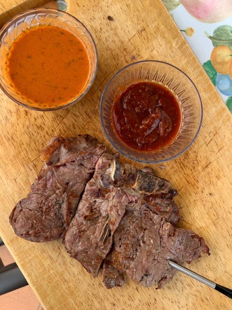 Hoy toca barbacoa y que mejor que con esta buena ternera gallega con nuestro Meater para comprobar el punto exacto al que queremos nuestra carne. Acompañaremos nuestro festín con dos deliciosas salsas Chimichurri y Barbacoa.