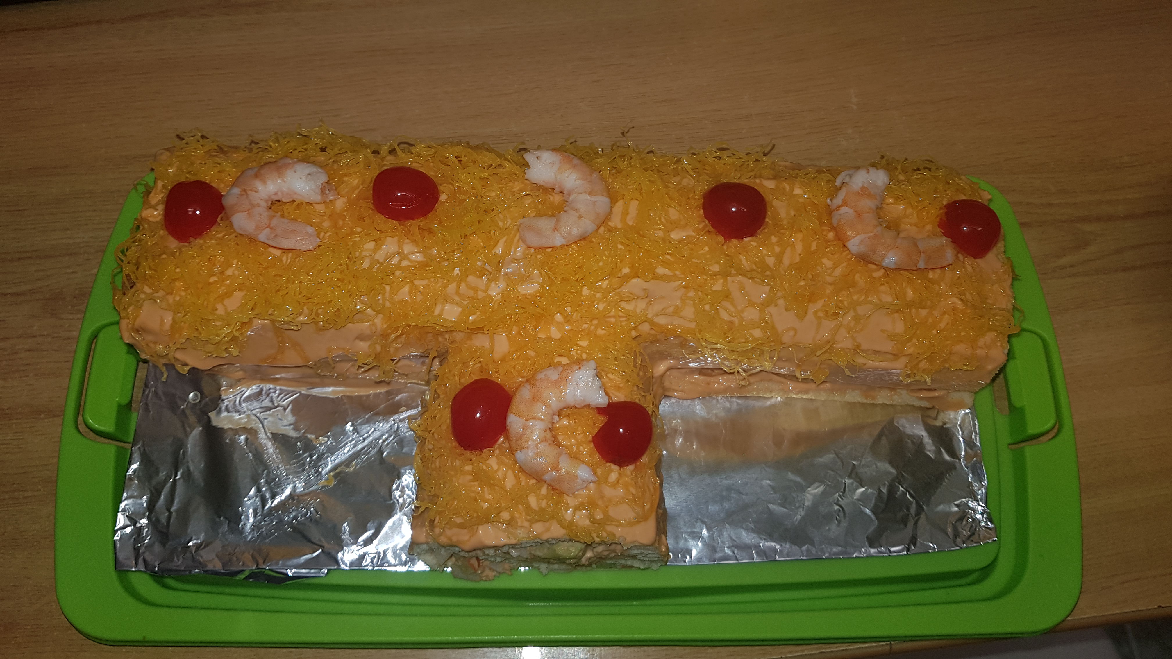 3- Cubrir con más salsa rosa y adornar. Servir bien frío.
