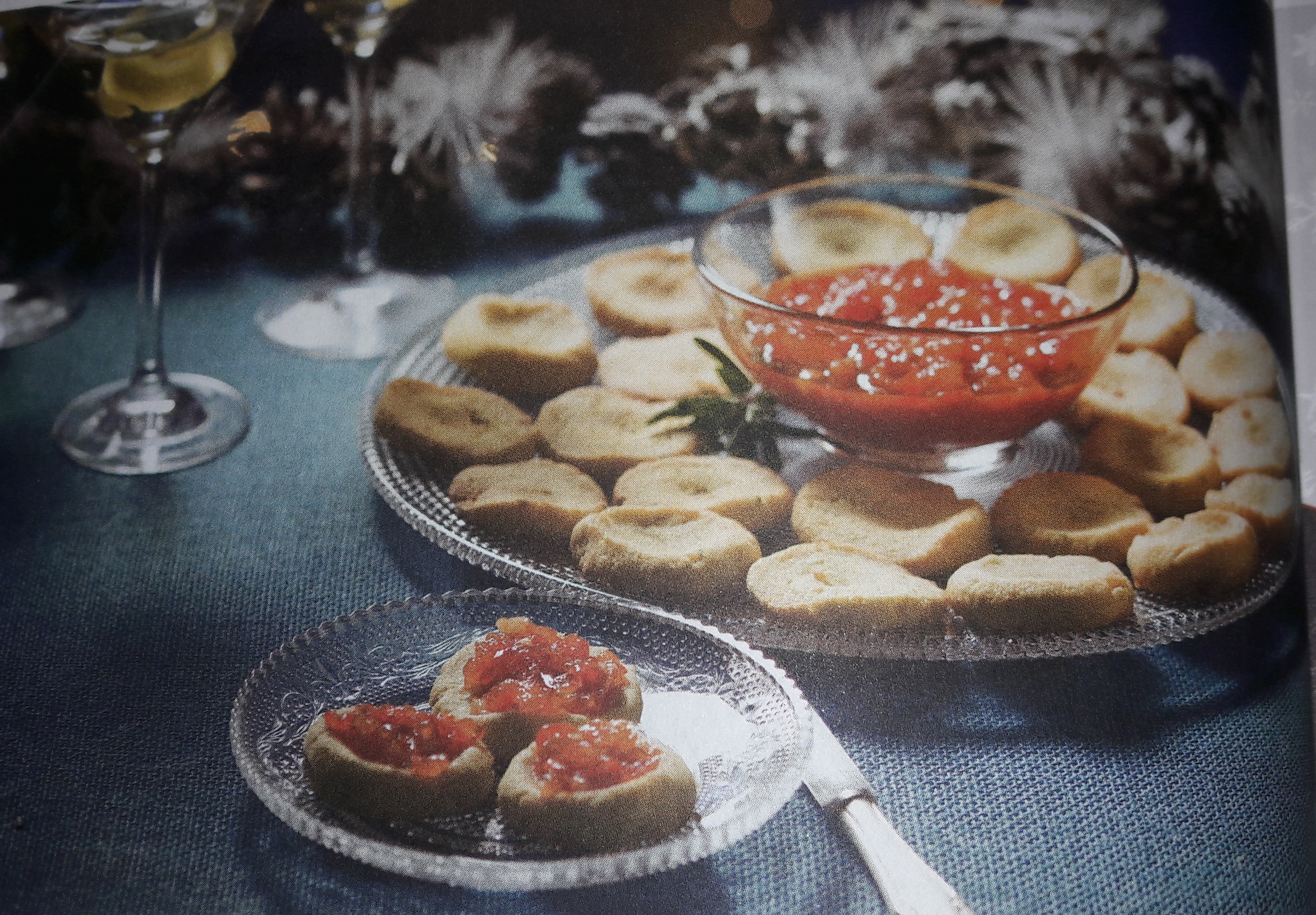 Galletas de queso con chutney de pimientos al whisky