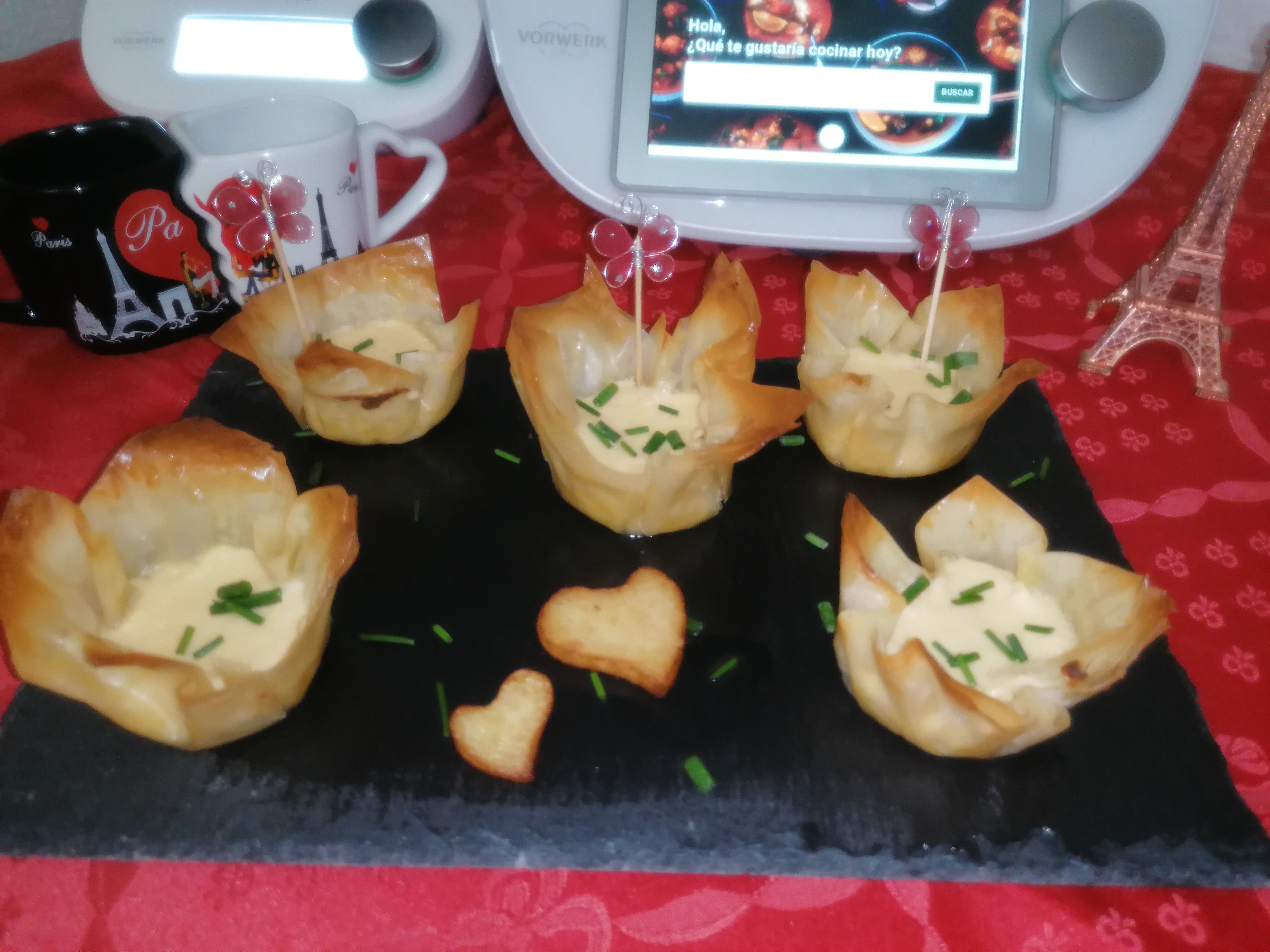 Tartaletas de masa filo de salmón y calabacin en thermomix tm6 Málaga
