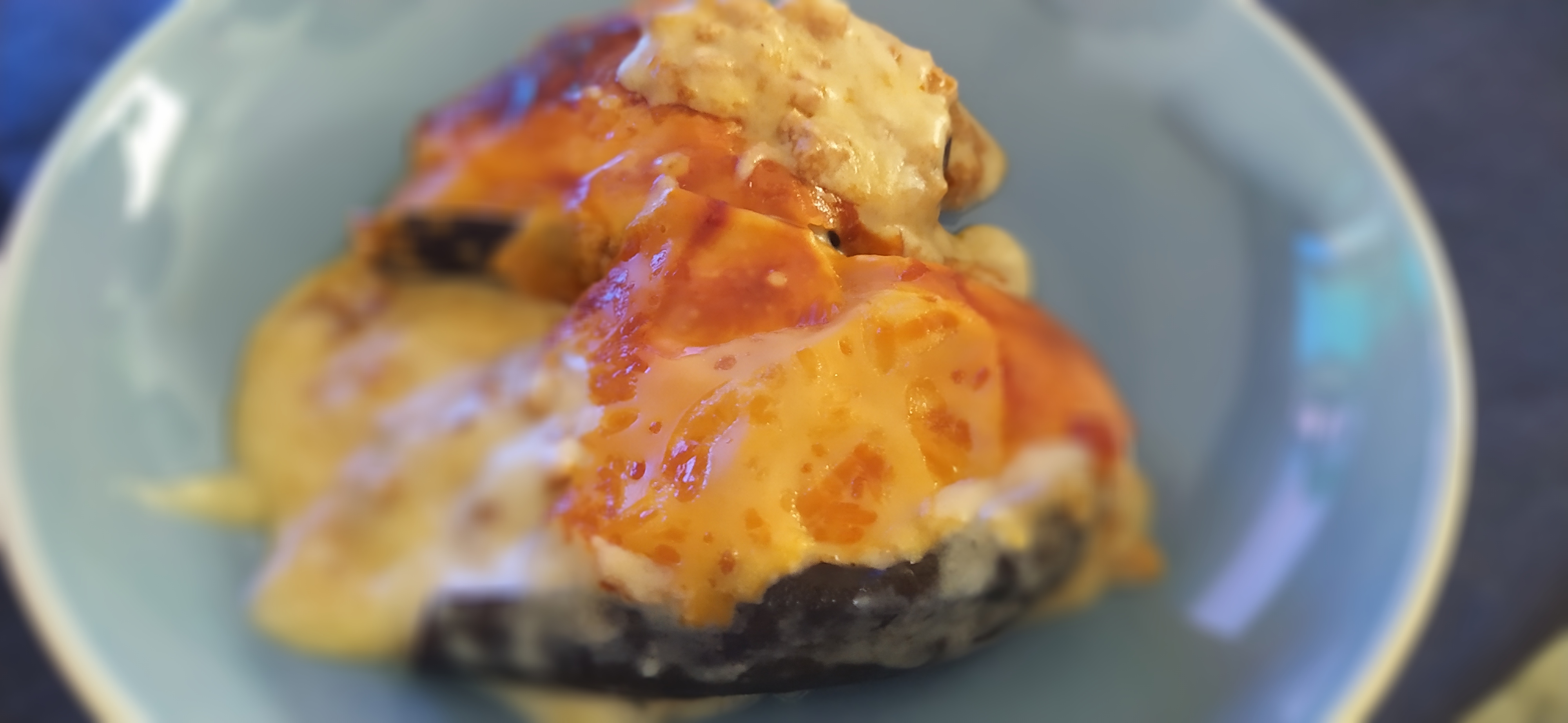 Echamos la bechamel encima de las berenjenas rellenas, le ponemos queso y a gratinar al horno 15 minutos a 200°C ( la temperatura y tiempo en el horno cambian dependiendo del horno que tengamos en casa)