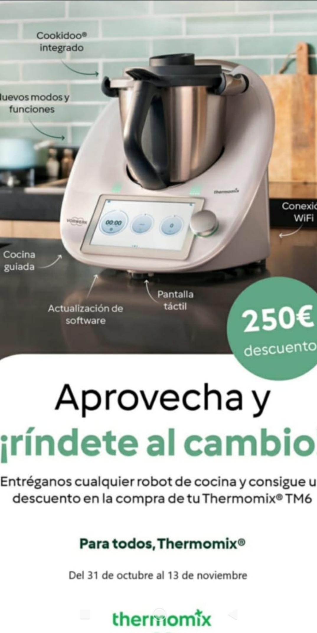 BOMBAZO THERMOMIX POR 1149 CON 250 EUROS DE DESCUENTO Y 3 AÑOS DE GARANTIA , SOLO HASTA EL 13 DE SEPTIEMBRE O FIN DE EXISTENCIAS.