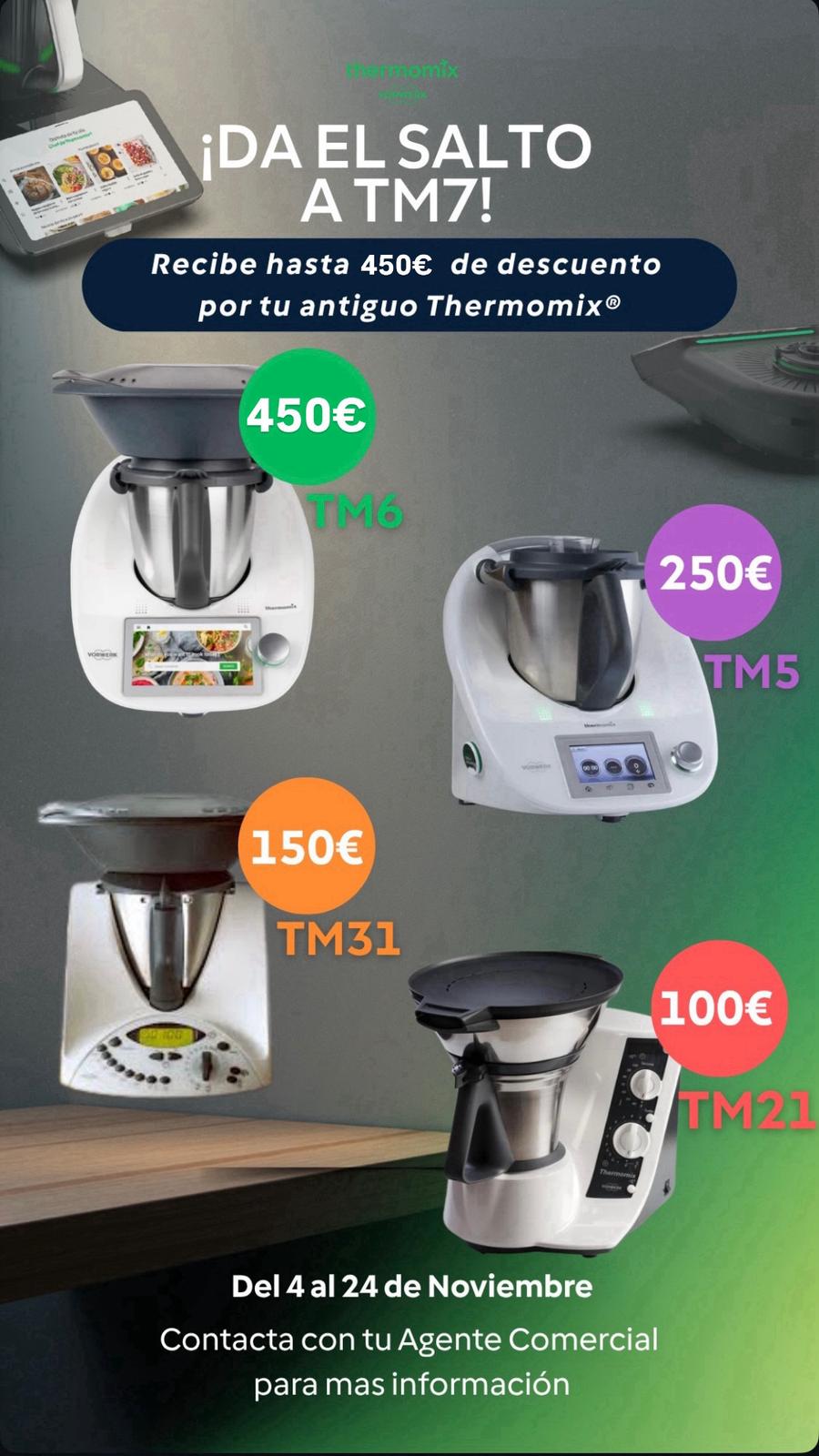 PLAN RENOVE ENTREGA TU THERMOMIX VIEJA Y TE DAMOS DESCUENTO PARA TU TM 7, SEGUN EL MODELO QUE TENGAS AUNQUE NO FUNCIONE. Y SI QUIERES MAS INFORMACION CONCTATA CONMIGO.