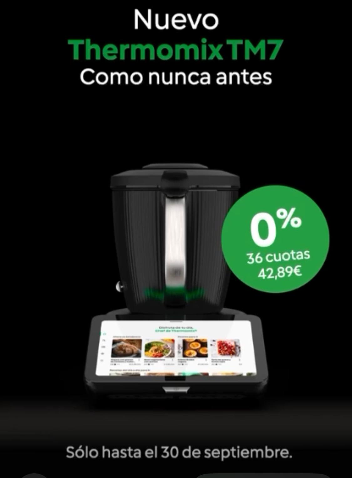 BOMBAZO THERMOMIX TM 7 SIN INTERESES POR 42 EUROS AL MES APROVECHATE HASTA EL 30/09 NO LA DEJES ESCAPAR Y SI QUIERES MAS INFORMACION CONCTATA CONMIGO.