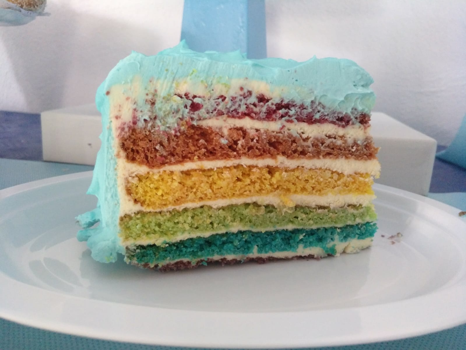 TARTA ALCOIRIS. Otra obra maestra de nuestra thermomixera Juana. Expectacular, buenísima y alegre.