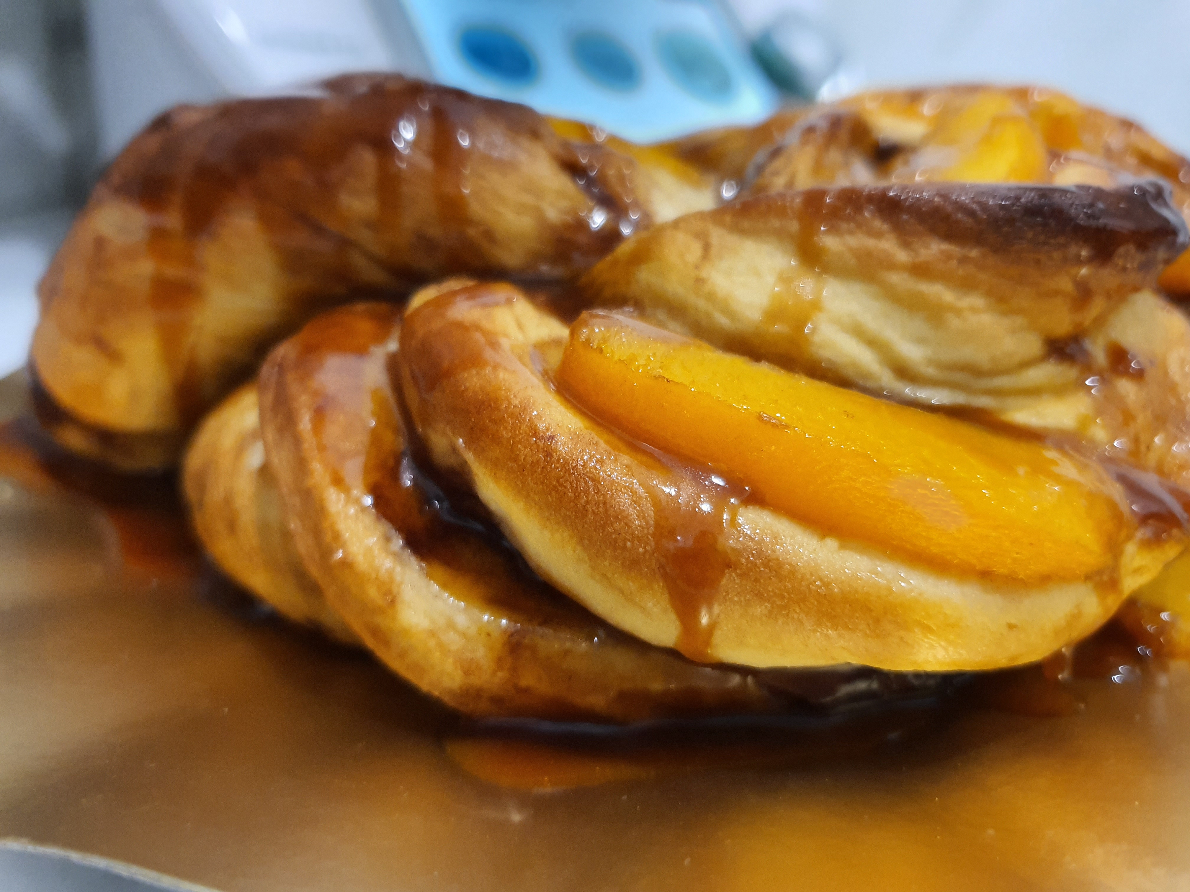El relleno se puede hacer de lo que quieras tanto dulce como salado. En la clase de navidad de este año lo rellenamos de tofee y melocotón queda tambien exquisito. Espero que os guste. queda espectacular.