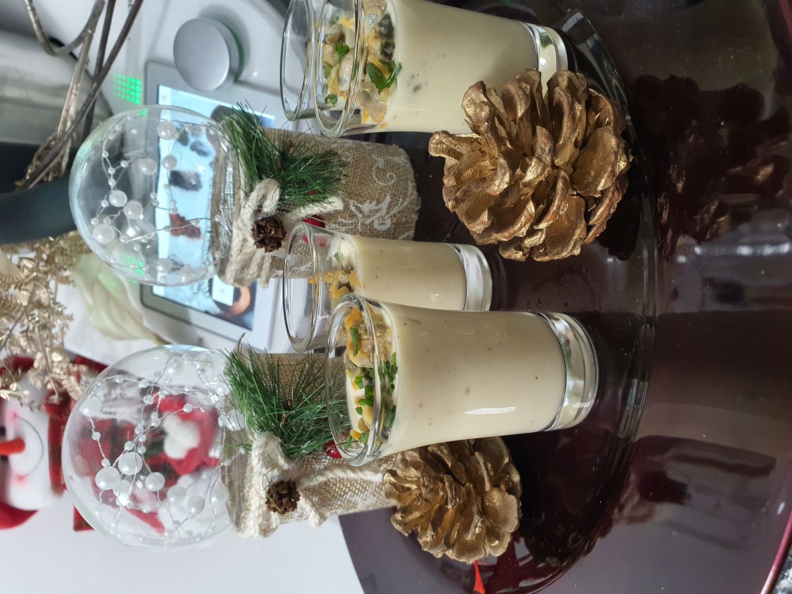 - Pon en el vaso los 200g. de espárragos, los 100 g. de mayonesa, los 15 g. de aceite de oliva virgen extra, el pellizco de pimienta y el liquido reservado de los berberechos. Tritura 1 minuto / velocidad 5 - 10 progresivamente. Reparte en vasitos y distribuye los berberechos y la decoración en ellos. para terminar con la decoración añadimos un poco de aceite de oliva virgen extra.