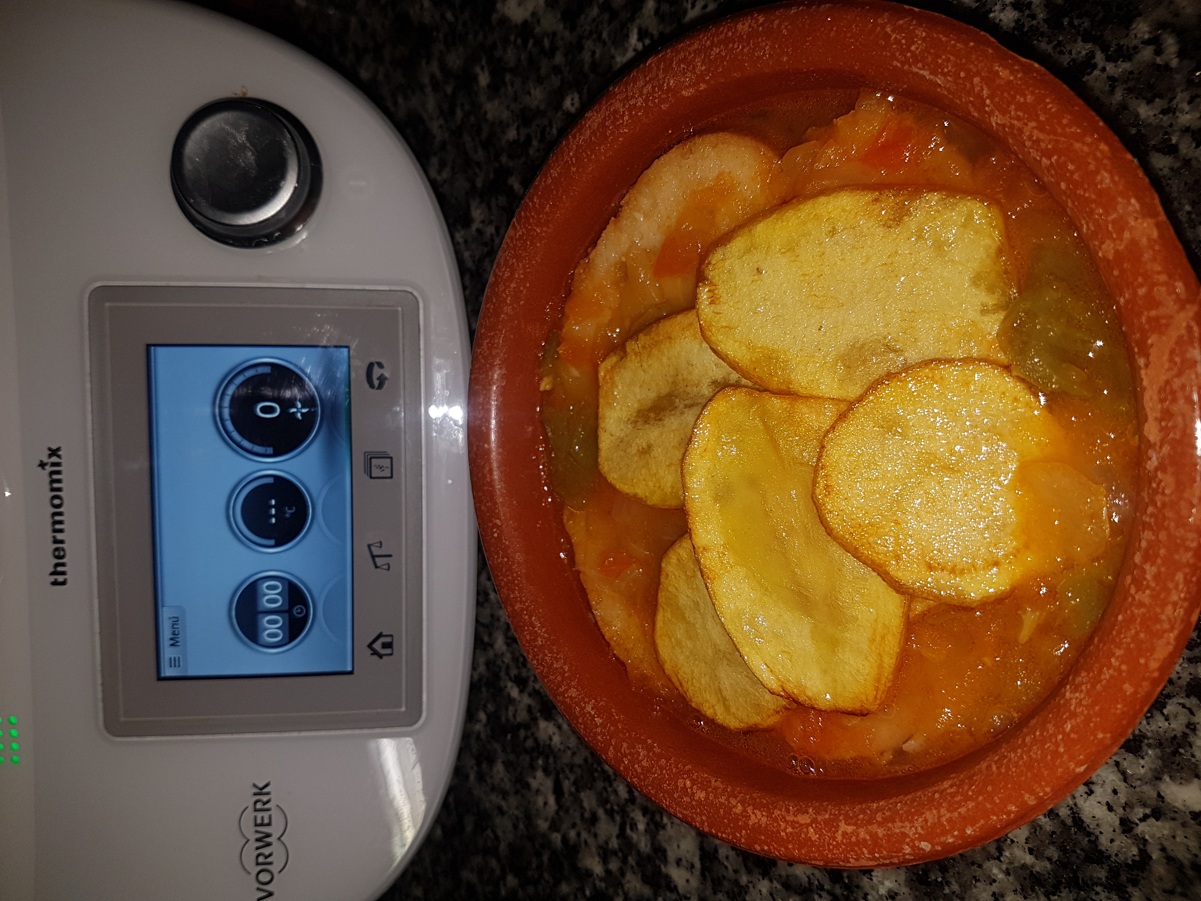 - En la opcion que yo os propongo (menos calorica) es que la pongais en rodajas en el recipiente varoma previamente pintado con un poco de aceite en el paso 2.