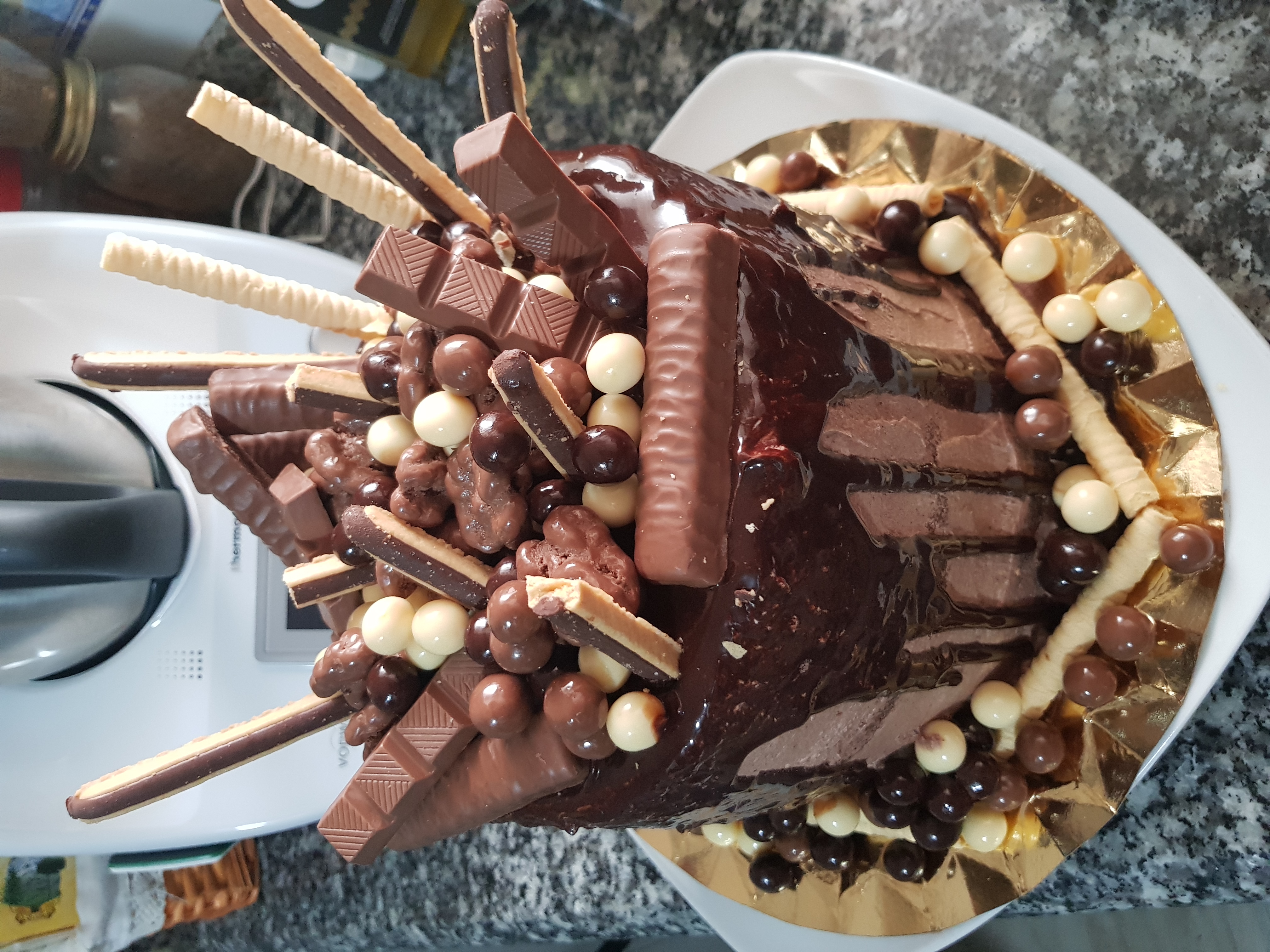 - Antes de servir, decore la tarta a su gusto con bombones, barritas de chocolates, bolas de chocolate de diferentes colores, y diferentes tamaños, galletas, mikados........