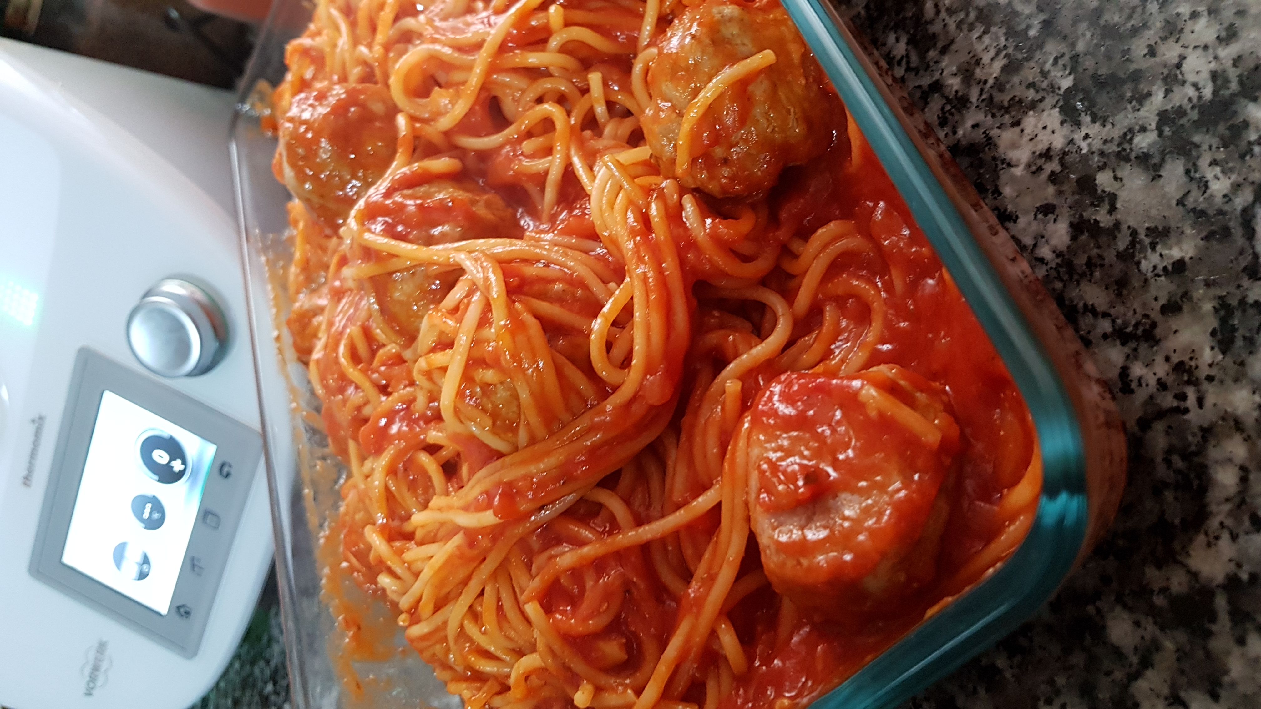 ESPAGUETIS CON ALBONDIGAS Y SALCHICHAS. ( EL PADRINO)