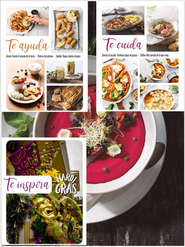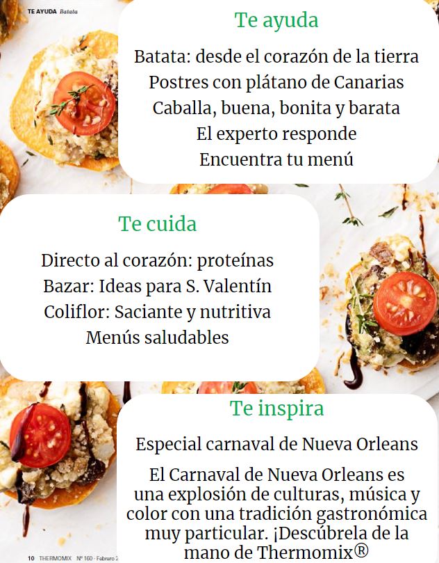 Podréis encontrar toda la información para cuidar el corazón consumiendo proteínas saludables, nos damos una vuelta por el corazón de la tierra explorando un ingrediente nutritivo y saludable; la batata. Nos adentramos al corazón del mar y te damos todos los trucos y consejos para preparar un pescado económico y saludable; la caballa. Proponemos 3 planes para San Valentín y un bazar repleto de ideas para hacer regalos fantásticos y para terminar, viajamos contigo a Nueva Orleans y te ofrecemos sus más famosas recetas Soul Food recién traídas del corazón del acogedor sur de EE.UU con las que celebrar un carnaval original y divertido.